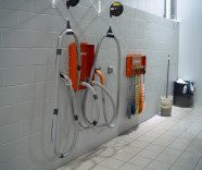 - Flexible Tubing & Fittings for interconnection from Central Chemical Dispensing System and Detail Pendant Drop. Tubing is run through a PVC Chaser up at beam level.