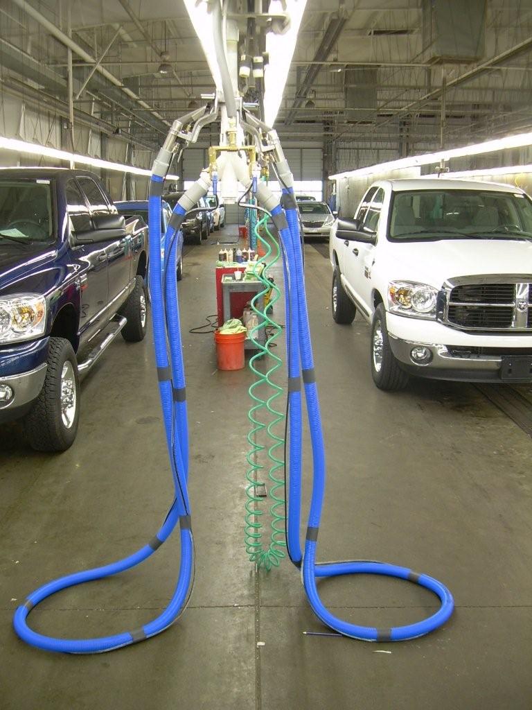 - Flexible Tubing & Fittings for interconnection from Central Chemical Dispensing System and Heated Extractor Drop. Tubing is run through a PVC Chaser up at beam level.