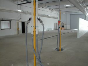 - Flexible Tubing & Fittings for interconnection from Central Chemical Dispensing System and Heated Extractor Drop. Tubing is run through a PVC Chaser up at beam level.
